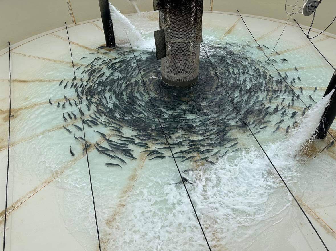 3/4 reuse of water and treated water without the use of biofilter – a Semi Recirculated Aquaculture Systems (RAS). The system increases the fish health and contributes to a high growth rate, very low death rate and high quality water in tank.